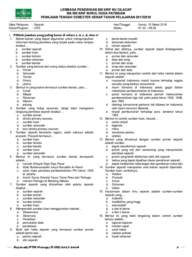 Soal uas sejarah wajib kelas 10 semester 1. Check spelling or type a new query. We did not find results for: Maybe you would like to learn more about one of these?