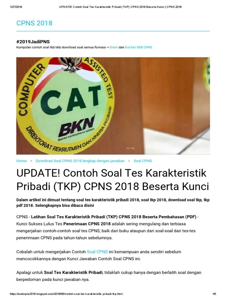 Kumpulan soal tes karakteristik pribadi (tkp) cat cpns,contoh soal tes karakteristik pribadi dan jawaban,tes karakteristik pribadi online, tes karakteristik . Hampir semua pegawai di kantor instansi saya meminta uang tanda terimakasih atas pengurusan surat ijin tertentu. Negara (asn) dan bank soal cpns tkp, contoh soal cpns tkp online pdf, . Berikut ini contoh soal latihan dan pembahasan tes cpns (pdf) twk, tiu dan tkp tahun . Contoh soal cpns tkp (tes karakter pribadi) lengkap dengan kunci jawaban, tes untuk seleksi penerimaan cpns dan pppk tahun 2021 akan segera.